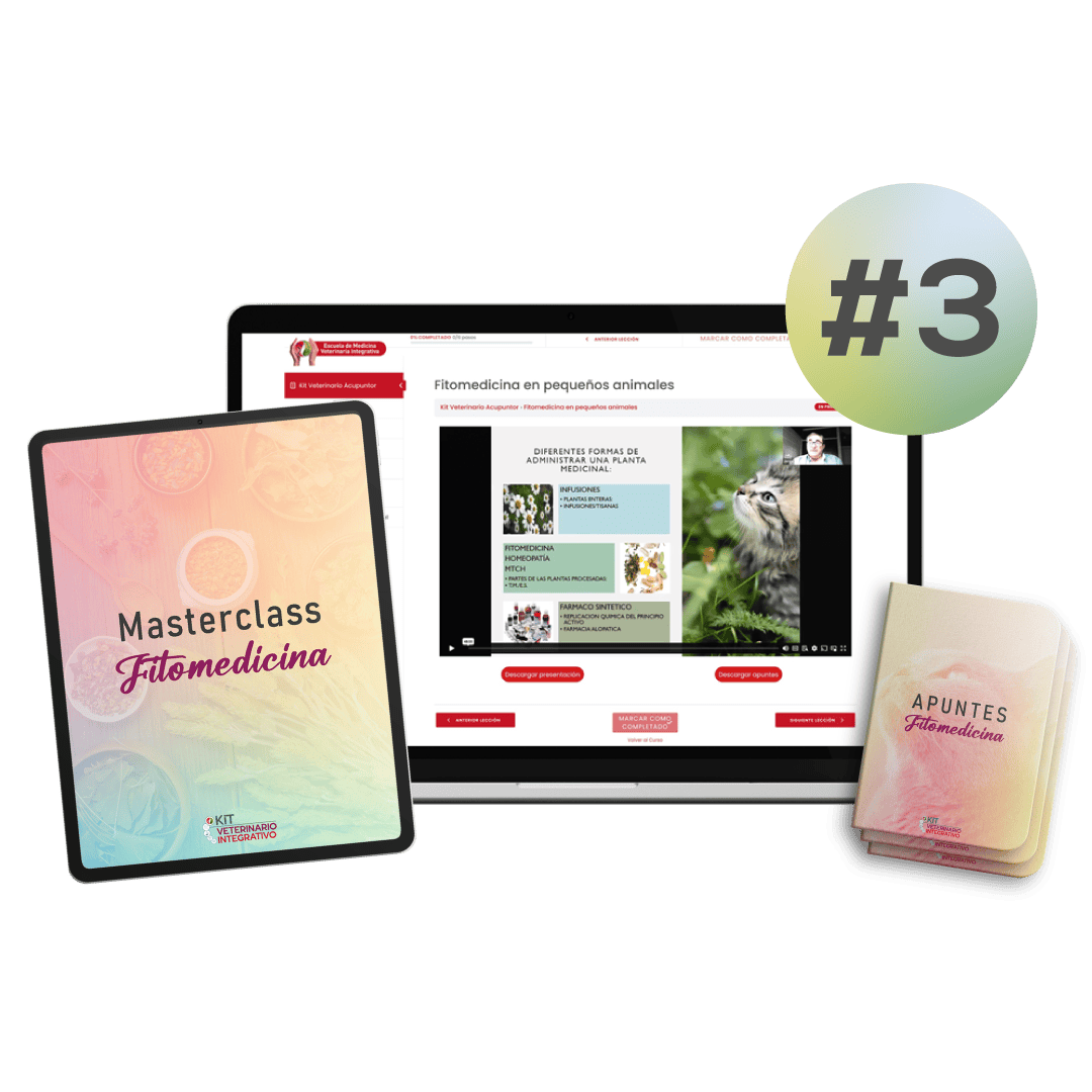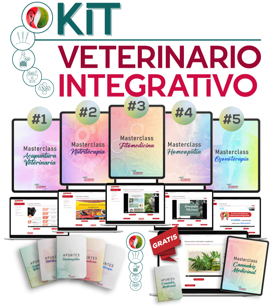 Este kit recoge los pilares esenciales de la medicina veterinaria integrativa, ofreciendo una visión completa y aplicaciones prácticas para tu consulta. Te sumergirás en un aprendizaje que aborda desde la acupuntura y fitoterapia hasta las últimas aplicaciones de CBD y ozonoterapia, brindándote un arsenal terapéutico completo para el cuidado de tus pacientes.